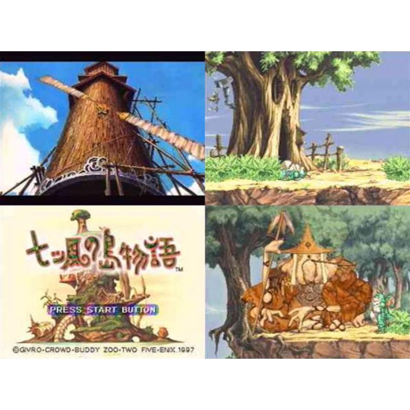 The title translates as 'The Story of Seven Winds Island.' Looks like the mighty Hayao Miyazaki san himself has done the storyboards in this fanatsy RPG with beautiful organic landscapes and obscure characters.