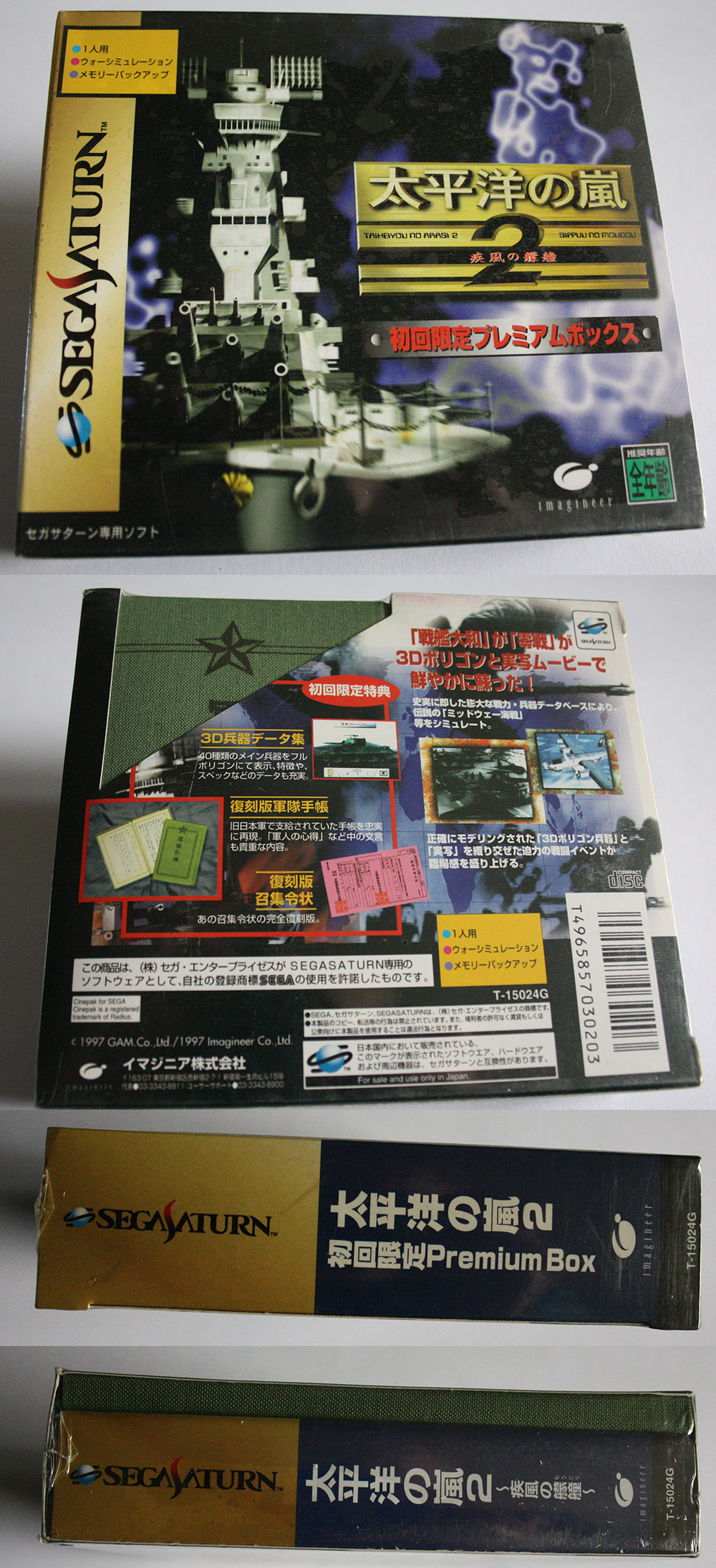 The title translates as Pacific Storm and features as you no doubt guessed, a take on the events of the Pacific Ocean during World War II. The scene is set with grainy footage of the war (and that's nothing to do with the Saturns video capabilities.) Cut scenes use computer modelling to replicate the action. Saturn completists will no doubt value the authentic appearing, canvas booklet which replicates war time document holders.