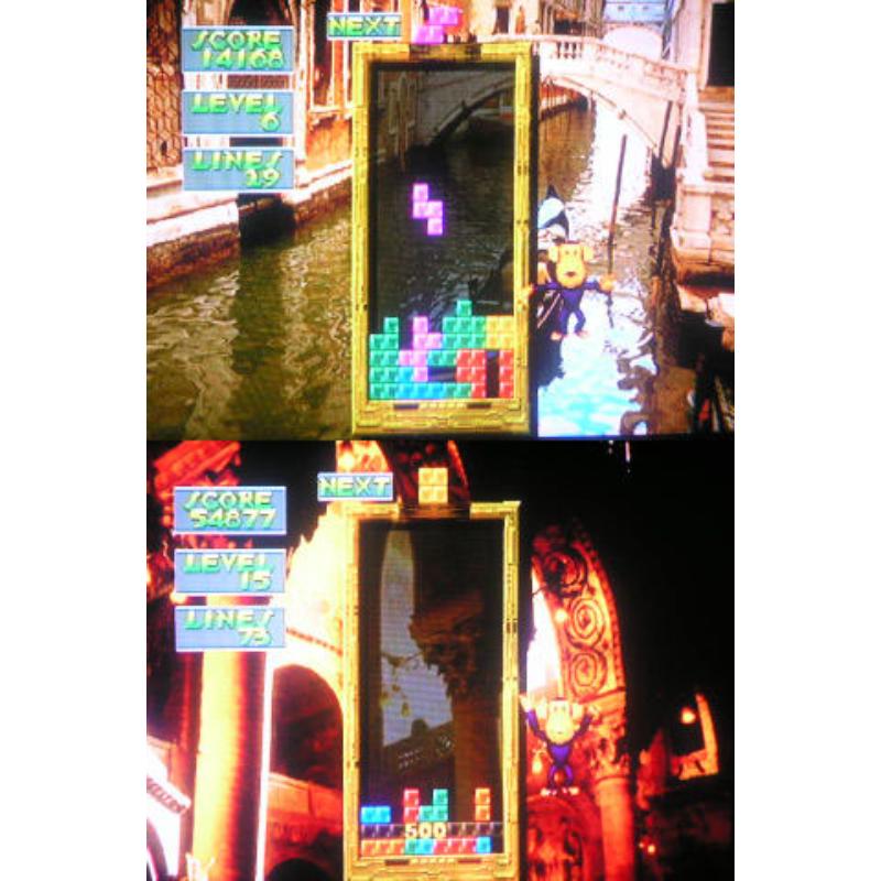 Monkey themed Tetris title for the Saturn with banana power ups to speed up play. The graphical settings are various famous world locales and they add to the ambience of this zen title.