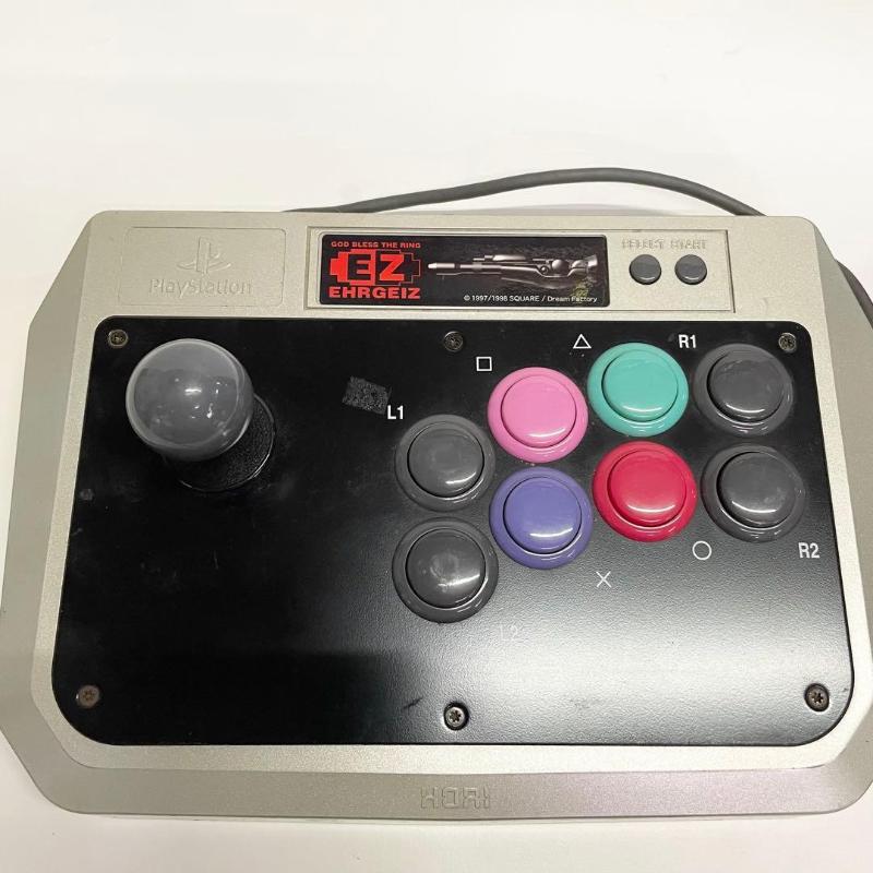 Solid arcade parts used for the body, joystick and switches with a finger friendly button layout and plenty of space to rest a wrist on. Not that much rest will be had in using it for Ehrgeiz as it is themed with the logo looking good against the subtle metal. But of course it works a treat on a wealth of Playstation genres, not just fight titles.