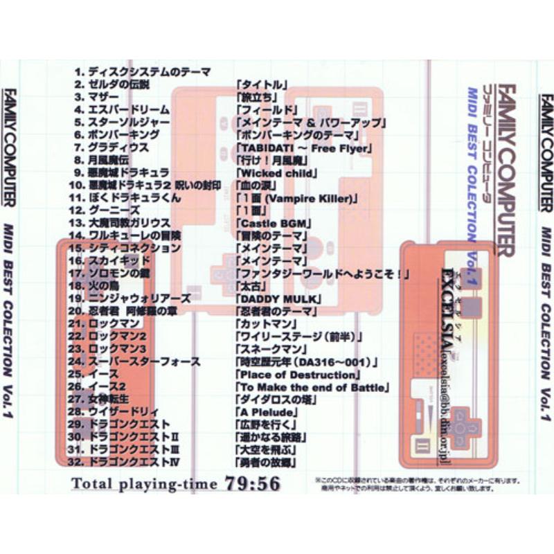 Some fine experimental material on this doujin release which clearly shows its I Love the Famicom tattoo complete with arrow through the heart. Plenty of dream titles given a midi work out with Rockman, Dragon Quest, Super Star Force, Ninja Warriors, Dracula, Goonies, Gradius, Star Soldier and Zelda starring.