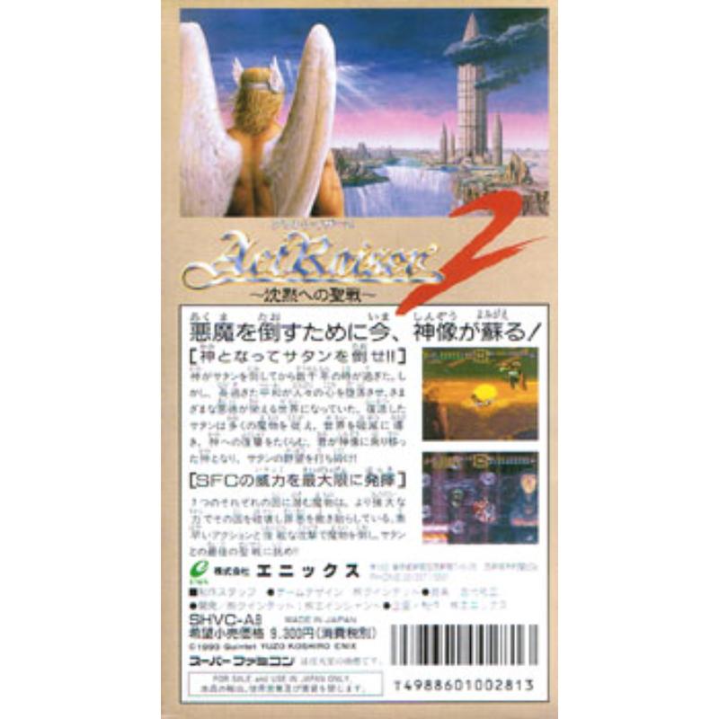 A successful, supreme prequel piled on the pressure for Actraiser 2. Instead of developing the town building aspect of the prequel, Enix scrapped it entirely focusing more on the platform aspect (and some would say the undeniably beautiful graphics.) A very pretty fantasy platform hack and slash is the result that shouldn't suffer because of its seminal prequel. Becoming increasingly rare.