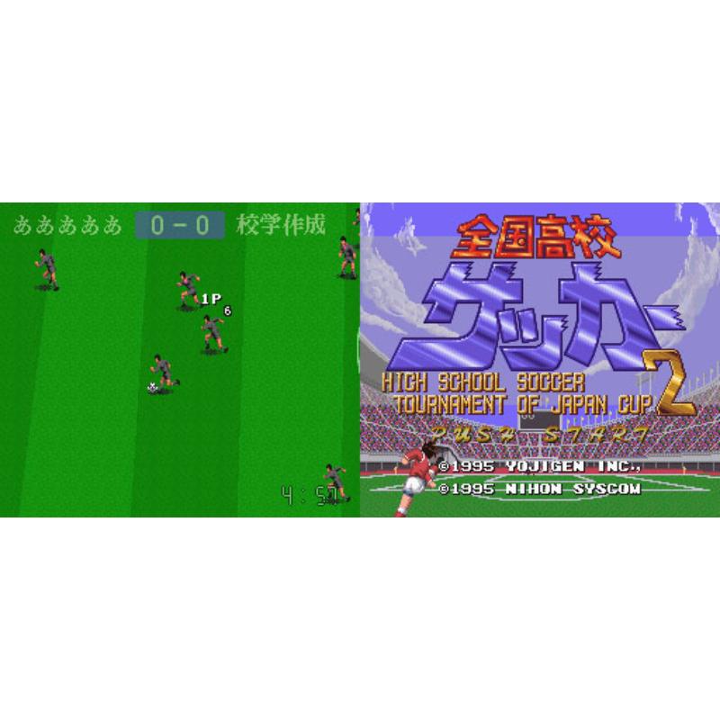 Or High School Soccer Tournament of Japan Cup 2 as the title screen puts it. And being a high school football game, there is plenty of support in the stands from both students and cheerleaders as the players are charged with the task of getting out of the local and district matches before going on to prefectural battles and hopefully all the way to the grand final. The play area is large like the arcadey Hattrick Hero and as such gives plenty of room for expression.