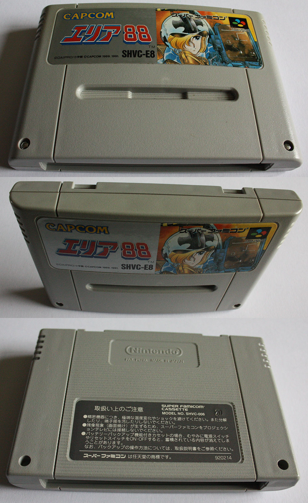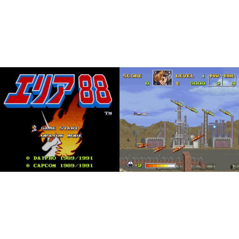 Coversion of the coin - op cracker based on the manga where Shin is stuck in a catch 22 situation of trying to raise enough money to be freed of his mercenary contract. None of that gets in the way of a good shooter though, apart from the money which is used to buy weapons from the shop in the realistic war master-blaster. If you can save a bob or two its also possible to splash out on an improved ship to assist on the combined air/land assaults. The graphics though do convey the emotions of the series well in the animated on screen character represntations and are also thankfully sharp in game with so much frentic action. Two other characters compete for selection each with differing health recovering properties and smart bomb potential compared to Shin's quick power shot charge. Known as UN Squadron in the West.