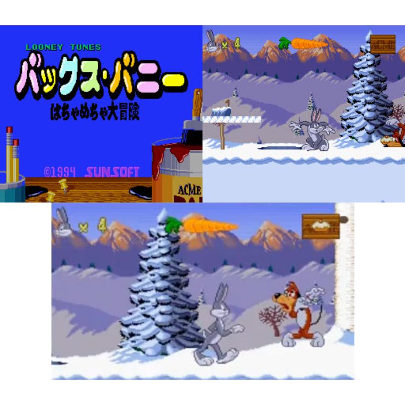 Very high standard of graphical excellence achieved by Sunsoft as the huge Bunny sprite dominates the screen and does justice to the fine license, without dragging down the frame rate. Full of nice touches such as the parachutes of squirrels knocked off branches and the Elmer snowman in the winter levels.
