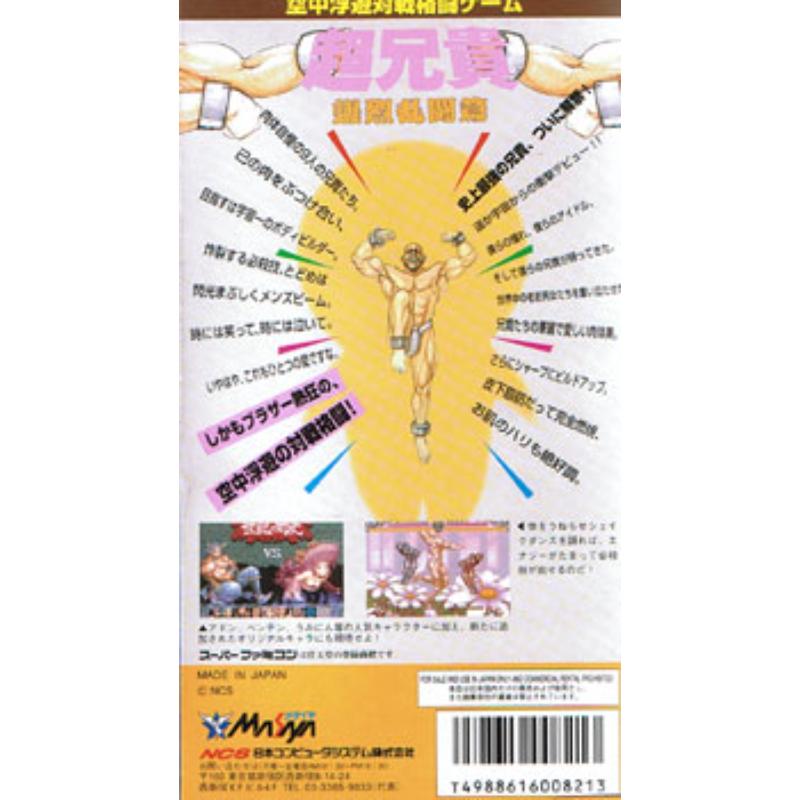 Roughly translating as 'Super Big Brother', this is the closest you get to the Village People on a console! Highly imaginative, very wacky digitised graphics to the point where you'll wonder if shiitake are the only mushrooms the creators have been having in their miso soup. Drifts away from the shooting action of its predecessors for a one on one fist fest taking place in mid air - reassuringly with female characters too. Although the fart attacks are no way to treat a lady.