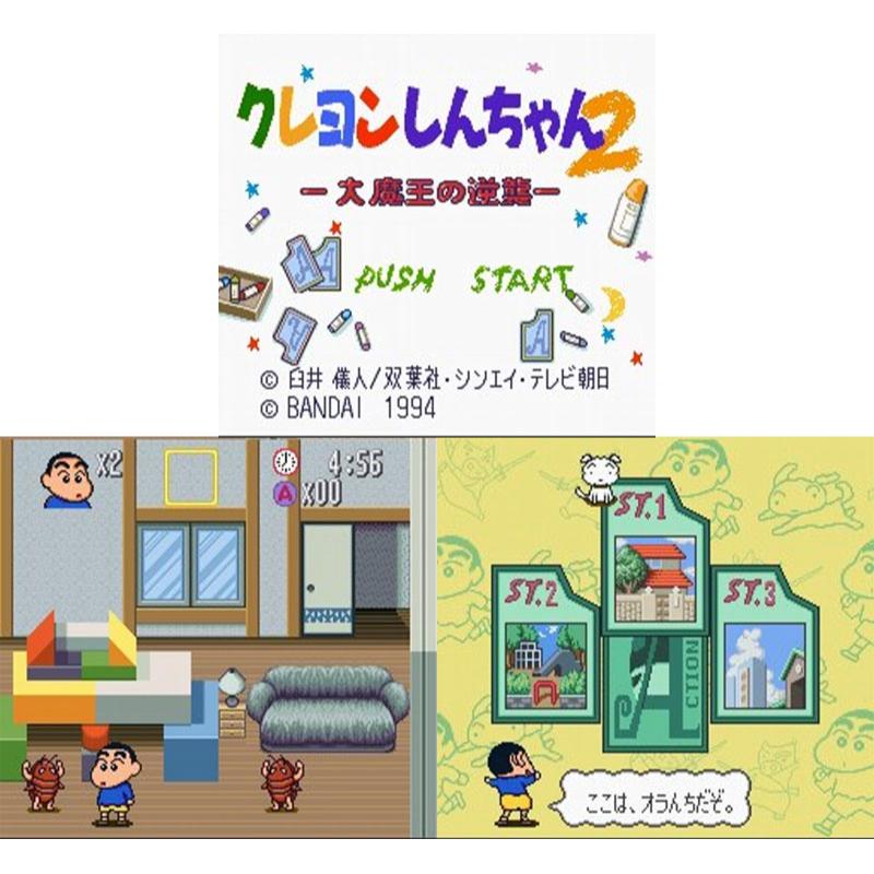 Fitting into the action platform genre comes a licensed game based on the escapades of the well known (at least in Japan) Shin Chan - drawn as if by crayon. Full of imagination and a refreshing visual style, Shinchan must take on adversaries such as cockroach men. Never lacking in colour.