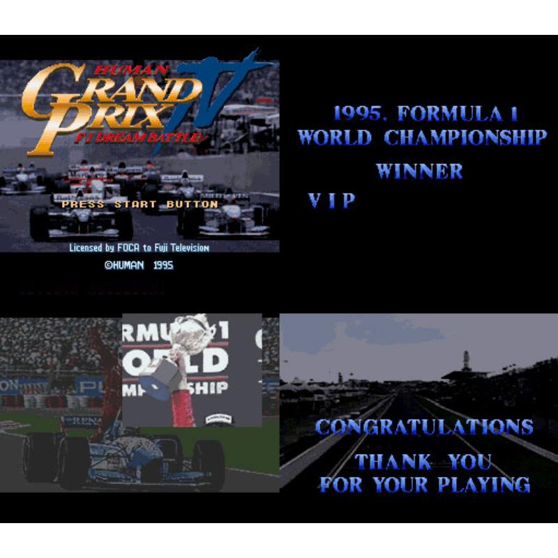 The final installment in the series on the Super Famicom, which thanks to its letterboxing of the play area, allowed a revolutionary simultaneous three player mode. Very clever use of Mode 7 and a series that stood top of the SFC podium as much as certain German Ferrari driver. Plus nostalgic petrol heads will delight at seeing a certain Nigel Mansell at the head of the pack. Warning: shots contain end credit shots.