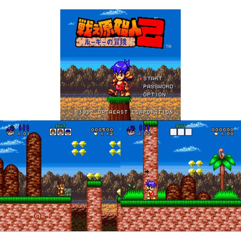 Simple platforming romp to match the bright primary colours used to create the platforming, prehistoric world complete with pterodactyls and power ups. Yet data East have a certain coin op je ne sais quoi that shines through brightly bringing this game to life with a plethora of fun. Known in Japanese as Tatakae Genshijin 2. Subtitled Rookie no Bouken. Known in the West as Congos Caper.