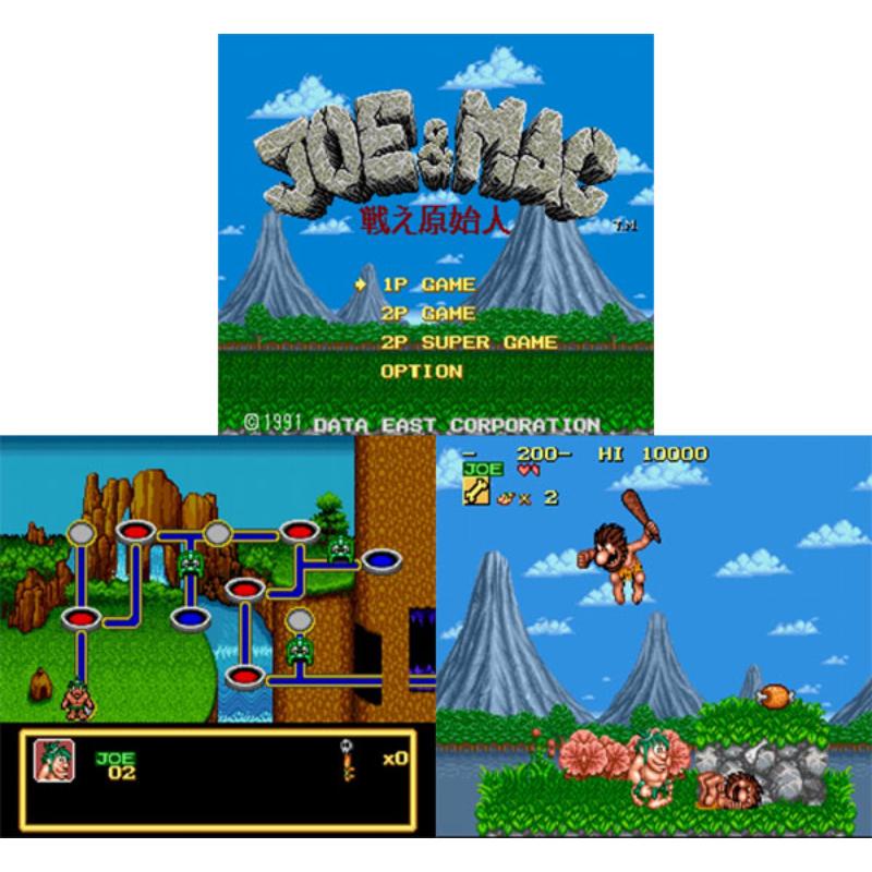Classic, colourful graphics with a prehistoric theme and lashings of vintage Data East coin op platforming action almost extinct these days as background dinosaurs spring to life and chase after players while venus fly traps flap out flailing branches. Pterodactyls swoop down to try and hinder our heroes from saving the good lady, but a well placed bash of the mallet soon puts pay to them.
