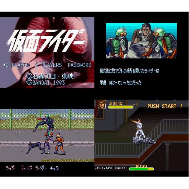 Skull cracking title up there with Captain Commando and Nekketsu Oyako as players take on the role of Seventies all action hero. The scrolling battles are faced in both normal human mode, complete with appropriately coiffured bonnet and also as our latex clad hero Kamen Rider. Nothing too elaborate in terms of gameplay, but definitely belongs to a much loved and sorely missed genre.