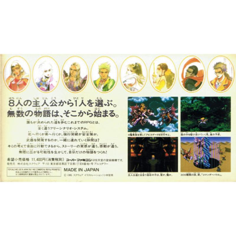 The final SFC Saga instalment develops Final Fantasy influenced sublime visuals with the series' freedom to roam and select quests to deliver a highly accomplished example of the depth to Square's RPG repertoire. The developer demonstrates a firm grasp of the Super Famicom's architecture in realising a detailed gaming world with an aurally pleasing soundtrack to stir the emotions. Plenty of imagination has gone into the game world too with characters ranging from snowman to pirate via elephant and lobster.