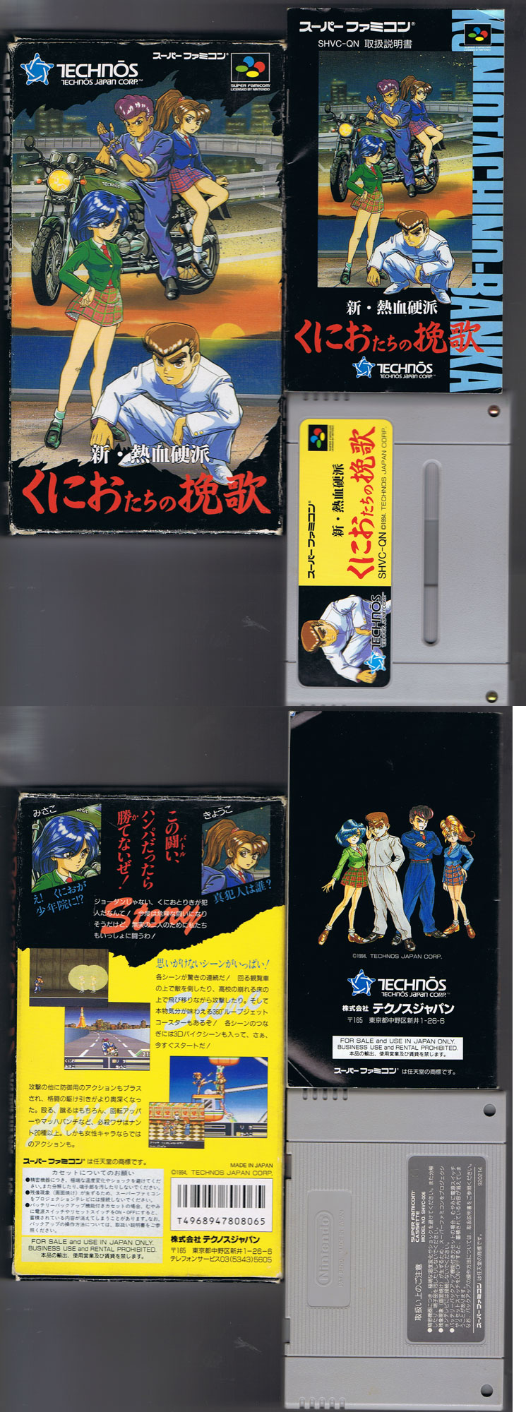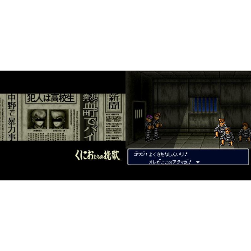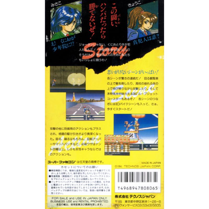 Kunio and and Riki have been set up for a crime they didn't commit and once they bust out of jail they are burning with desire for vengeance along with their girlfriends Kyoko and Misako that can also be controlled. The ladies lack the array of moves Kunio kun and Riki possess, yet make up for it in speed. Simultaneous two player cooperative play is very enjoyable and the beat 'em up levels are kept interesting by the array of characters that pile out to attack our street savvy duo and also by the mini games such as the funfair level complete with roller coaster. Underlines the reasons for Kunio's cult following in Japan.