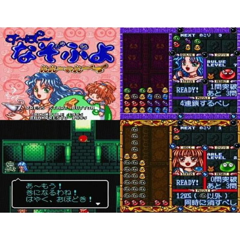 A nice twist on the squishy Puyo Puyo empire that sees players having to tackle predetermined screens of the jelly like beans. But there are RPG elements first before the player gets to the puzzles as our heroine, Rulue, takes centre stage. Full title: Super Nazo Puyo 2 Ruru no Tetsuwan Hanjyouki.