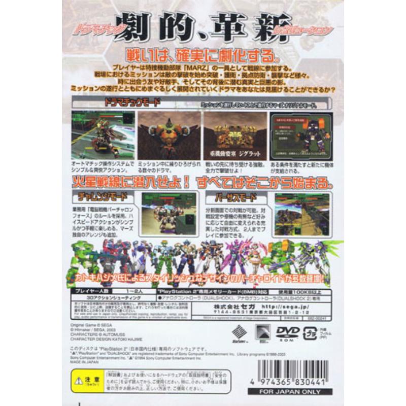 PS2 update of the Sega smash from the arcades that demanded dedication to master the full destructive prowess of the mecha pugilists. Not that bouts within the confines of the ring are always toe to toe - its often best to pick off an opponent from afar with a few tactical strafes before moving in for the kill. A superb range of robots to select from and some well thought out controls in the absence of the Twin Sticks controller. Opening the Virtual On world up for all to enjoy will hopefully please even the most fiercely loyal of fans.