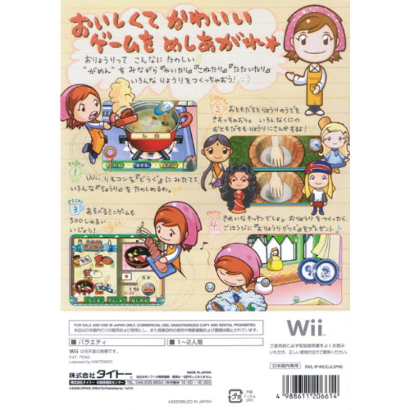 Delightfully original title based on the PSX import extravaganza 'Ore no Ryouri.' Takes the Wii controller to new heights of usefulness as it slices, chops and whisks away in the kitchen of the apron-ed Mama. Thankfully there aren't too many spuds to peel as budding chefs get set a variety of mini tasks to be successfully completed within the time limit in order to make the dish and attain domestic nirvana. So cooks will be cracking eggs, chopping meat or slicing vegetables with a deft flick of the wrist. The main character is very well done looking like the ideal domesticated mother in her cooking uniform. Two player mode is the icing on the cake putting any of these reality cooking programmes to shame as the heat builds in the kitchen. Subtitled in Japanese 'Minna to issho ni Oryouri Taikai.'