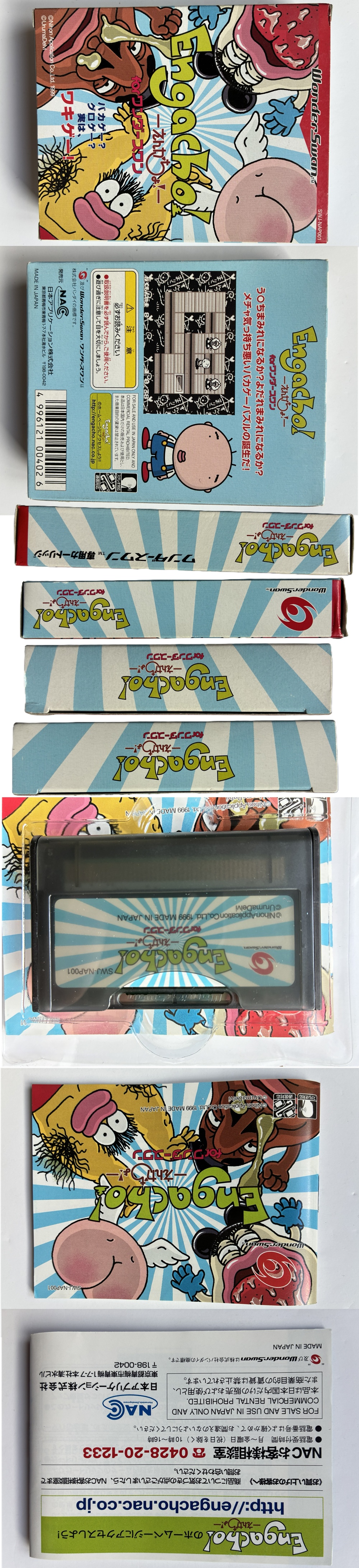 An unusual puzzle game for the WS in which players have to prove themselves worthy to their father by negotiating the maze levels that feature five hazards trying to get you. The hazards vary but the best we can mention are being attacked by armpit hair or by mucus from a dripping nose. Charmingly fun.