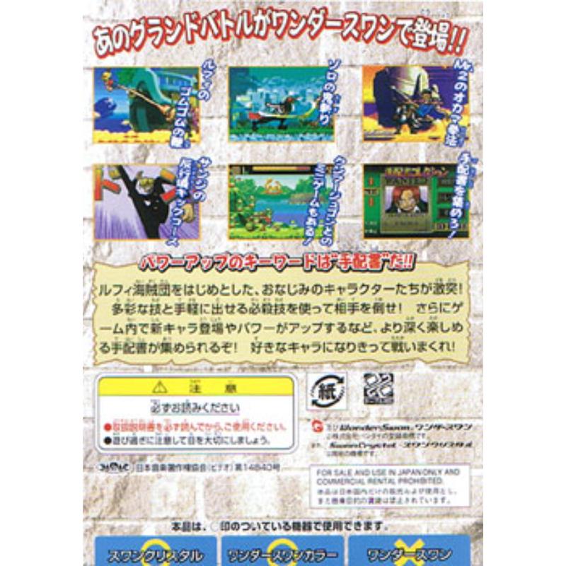 Colourful and fluid animation as you'd expect for a game based on the unpredictable, pirate anime. Shows the raw potential of the Wonderswan in the right hands. Full of maritime frolics and high jinx just like its television counterpart.