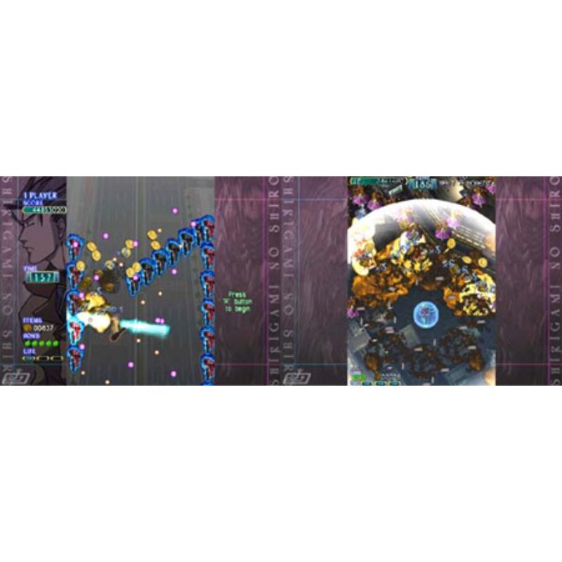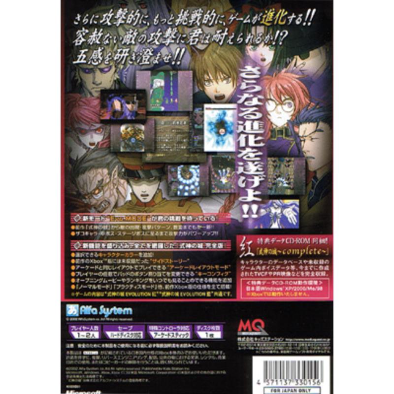 Rumoured that there are only 10,000 copies of each of the two Evolution variants in circulation: Red with the female protagonists on the front cover, Blue with the male. Besides the cover changes, Evolution comes with an extra gameplay mode over the original version plus a bonus PC CDROM featuring the series' luscious art. Based on the popular Japanese arcade blaster, Shikigami brings vogue to a genre sadly neglected on this generation of machines. Verticle perspective, play is as one of five human characters with a further unlockable character not available in the arcades. Also five levels, each with three stages. Dispatched enemies drop coins which are used to bolster your weapons. Massive bosses and adrenalin pumping soundtrack, but its the 'weapon boosting' element when you are close to an enemy that gives Shikigami its uniqueness and encourages you to dice with death just a little more. And such arcade thrills and spills are most welcomed on the XBox. Also known as Castle of Shikigami.